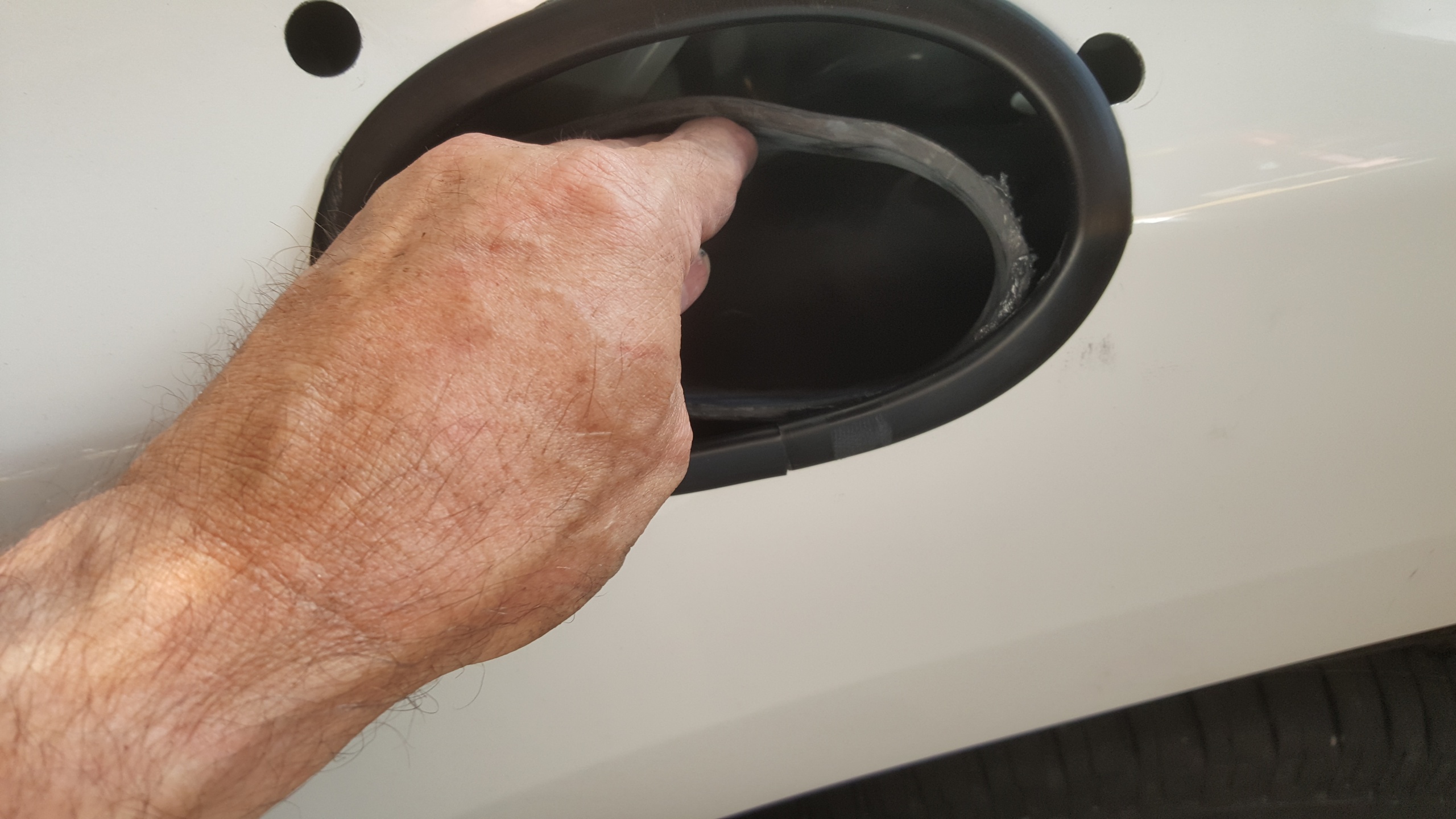 Zusätzliche Serviceklappe wird in Heckkotflügel eingepasst.