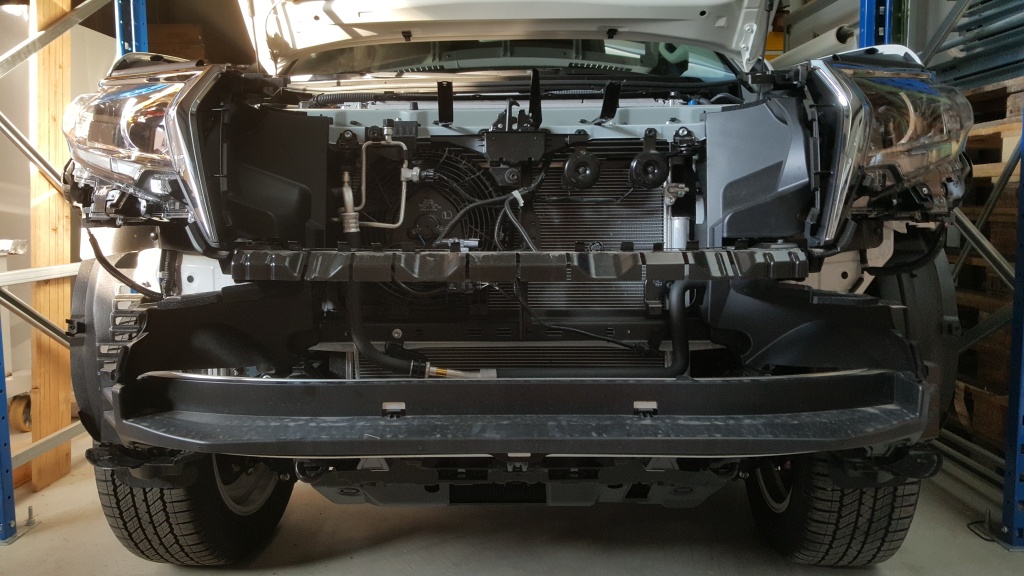 Die gesamte Front wird demontiert und eine stabile Stahlstossstange mit Windenhalterung wird montiert.