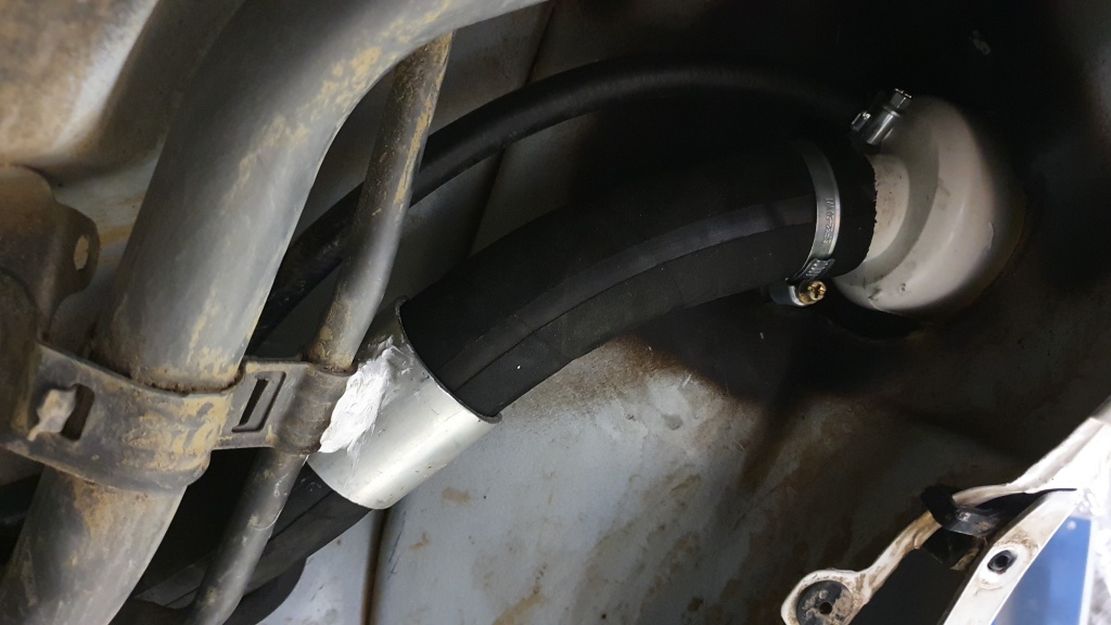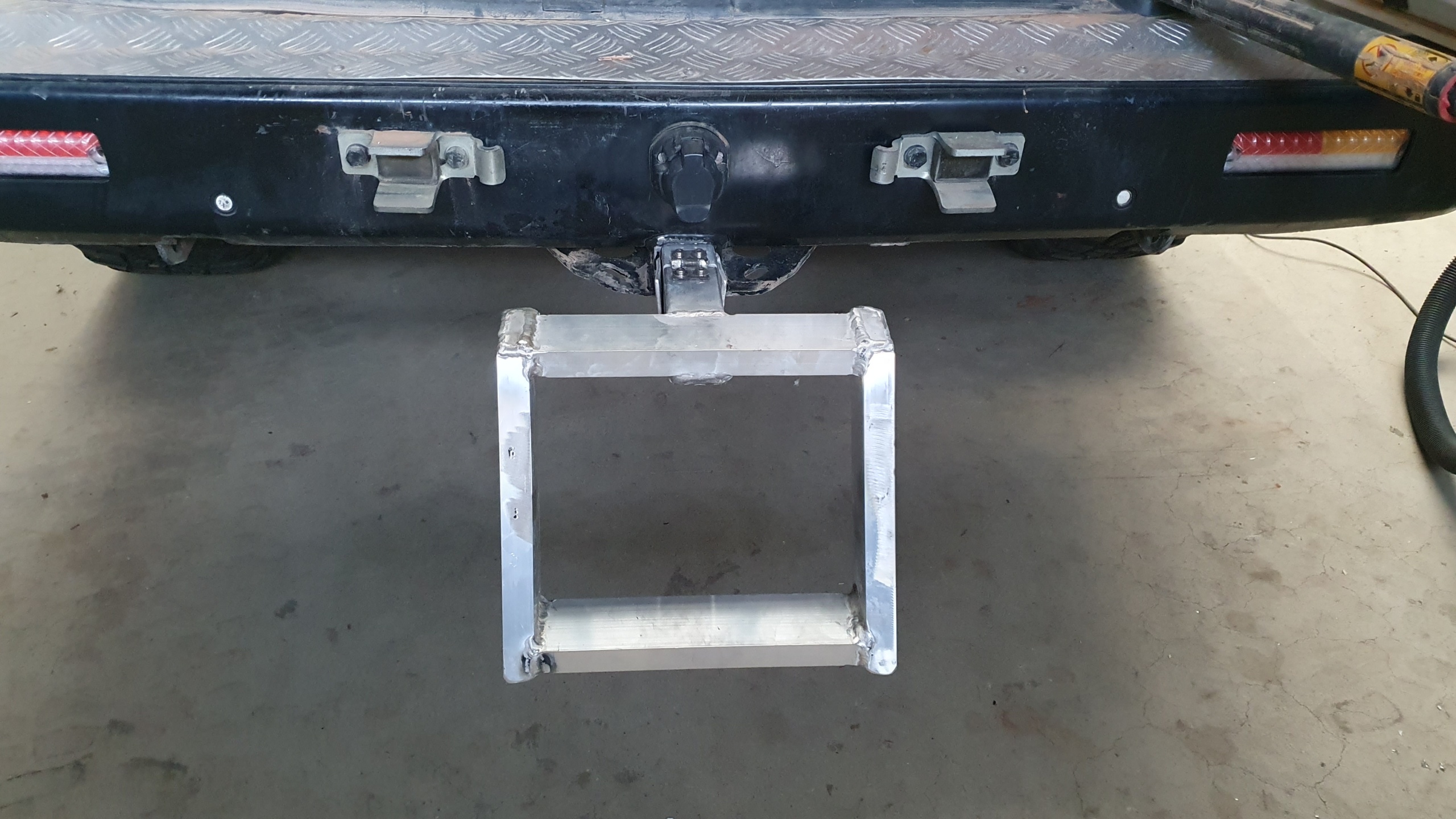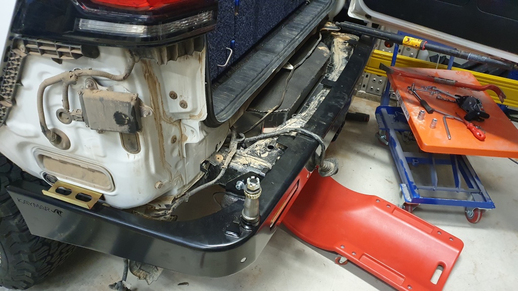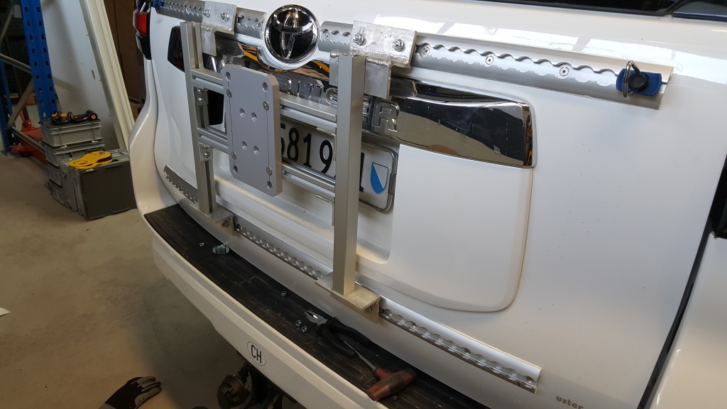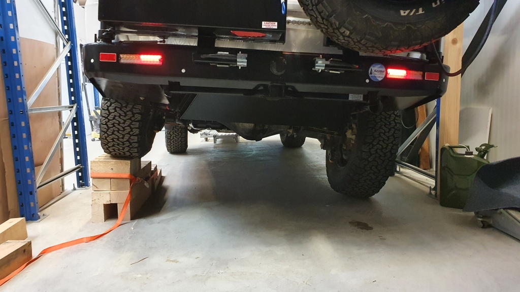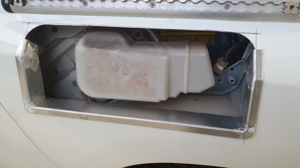 Nach dem Einbau der Heckstossstange und der Deplatzierung des Reserverades kann der Zusatztank verbaut werden.