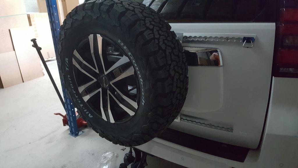 Das unter dem Fahrzeug montierte Reserverad wird neu an der Hecktüre platziert. (Grund) 1. Sitzt man im Dreck und muss Radwechsel machen ist dies beinahe unmöglich. 2. Der neu geschaffene Platz bietet die Möglichkeit einen zusätzlichen Dieseltank zu platzieren.