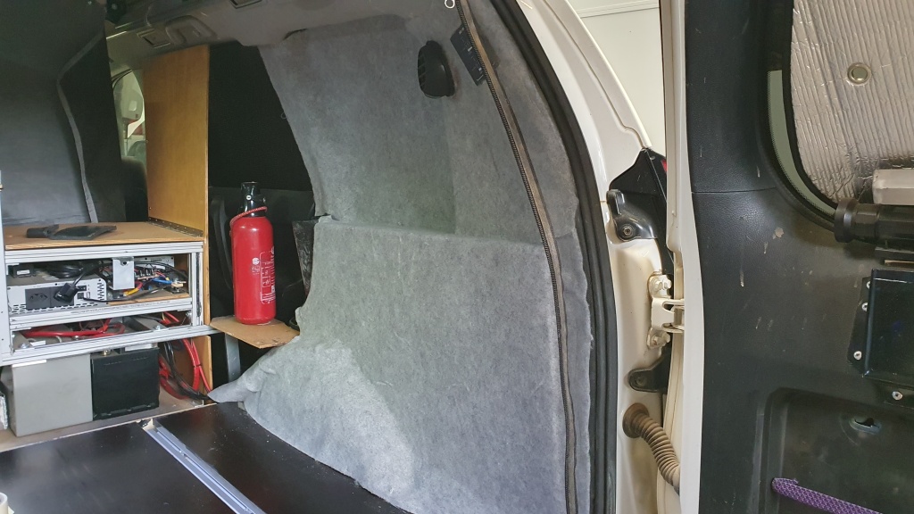 Filzverkleidung und Ansicht auf die beiden Lithiumbatterieen und Steuergeräte